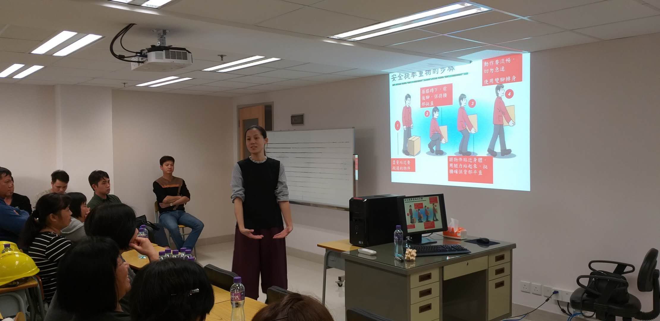 2018年11月29日,九澳油库邀请澳门劳工局职安健中心高级技术员对员工进行“体力处理操作及预防背部劳损”讲座。讲座通过图片、短片等形式,详细分析了搬运、推拉、攀爬等体力操作过程中易发生的工伤事故案例,并对油库石油气瓶搬运装卸过程中容易受伤的环节、潜在的风险及应采取的防范措施进行了互动讨论。讲座内容充实、生动活泼,使员工对预防职业伤害有了更深的理解,进一步增强了员工职业健康安全意识。