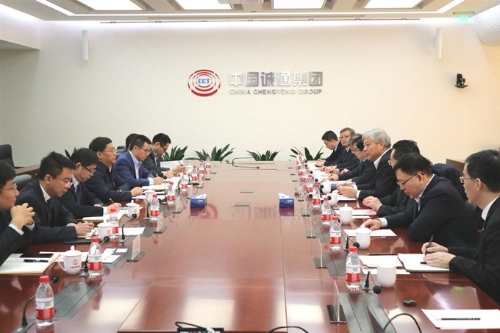 11月8日上午,集团董事长傅建国一行在北京拜访了中国诚通控股集团有限公司(以下简称“中国诚通”),与中国诚通董事长朱碧新一行座谈交流。集团副总经理罗群、总会计师彭晋鸿、副总经理王彤彦和中国诚通副总裁童来明等参加座谈。