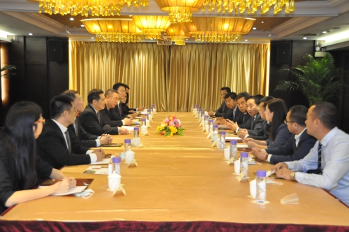 傅建国董事长与两县代表团在第25届MIF展现场交流工作