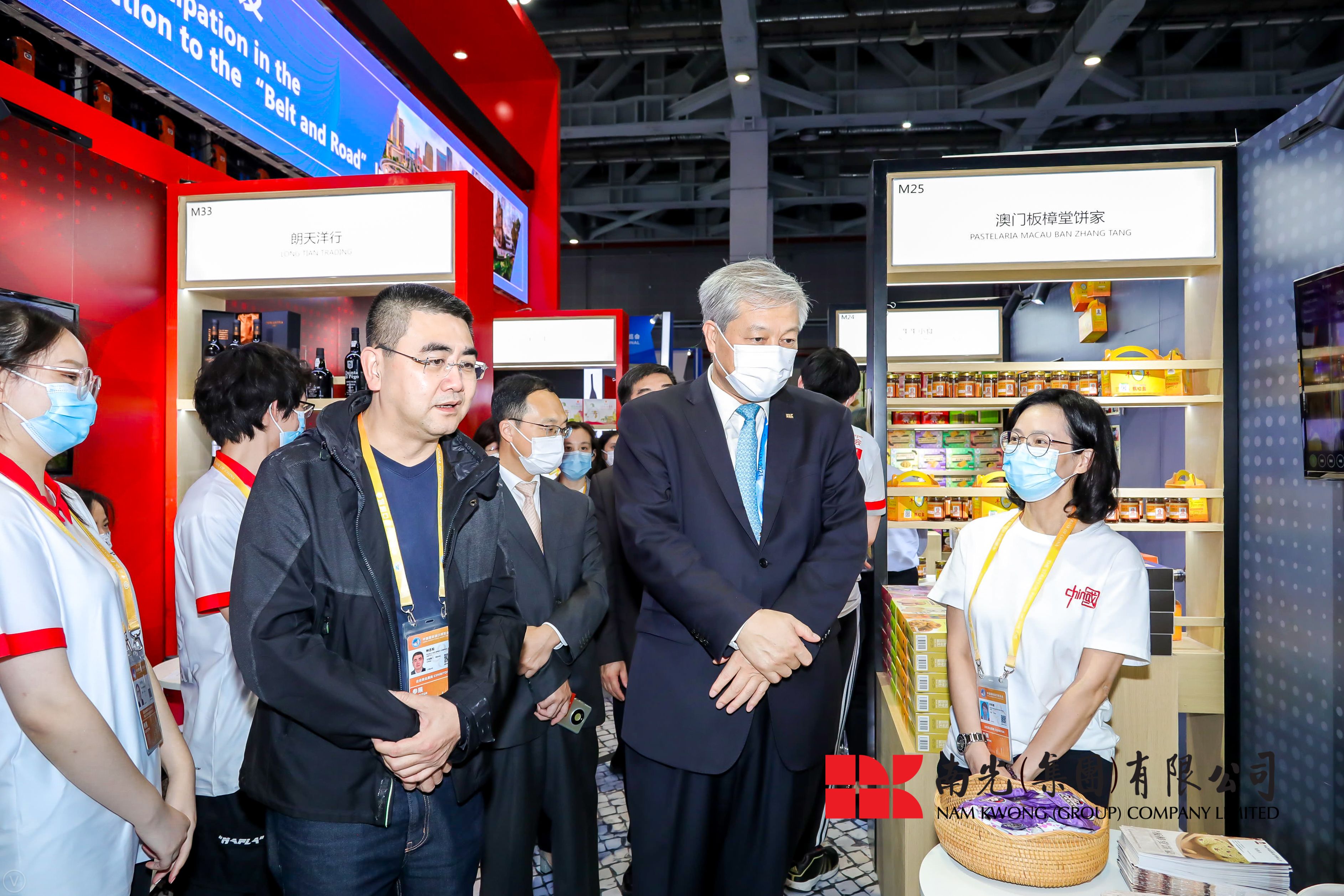 论坛前后,傅建国一行在国家会展中心展览馆参观了“国家展”和“企业展”及澳门贸易投资促进局统筹的澳门企业展区。贸促局组织46家从事澳门制造、澳门品牌、代理葡语国家的食品及饮品和服务贸易的本澳企业参展。展现澳门参与粤港澳大湾区及横琴粤澳深度合作区等工作,推介澳门的中葡平台优势,介绍澳门投资环境、服务贸易及会展业发展等。