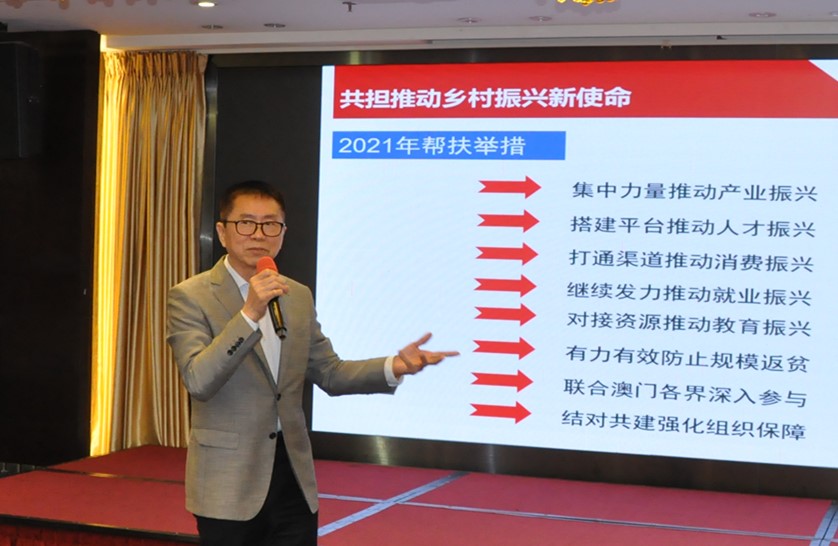 傅建国向长期以来关心和支持南光集团定点帮扶工作的澳门各界朋友表示衷心感谢和致以崇高敬意。他指出,中国脱贫攻坚取得全面胜利,创造了又一个彪炳史册的人间奇迹。澳门各界积极参与其中,书写了中国减贫历史的澳门篇章。澳门各界的付出,历史会铭记,南光集团会铭记,脱贫群众也会铭记。下一步,南光集团将秉持“南光+”合作发展理念,携手澳门各界共担使命、同心同行,为巩固拓展脱贫攻坚成果同乡村振兴有效衔接贡献力量,为推动澳门特色“一国两制”成功实践行稳致远贡献力量。