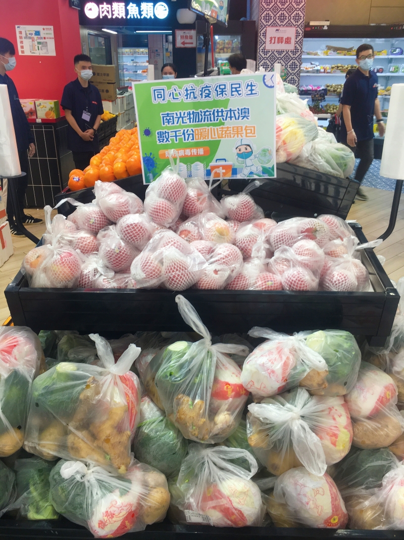 作为澳门的一份子,南光物流积极履行社会责任,充分发挥抗疫关键时期守澳护澳保民生的重要作用,已为澳门市民准备5,000份暖心蔬果包,6月20日中午12时起以特别优惠价在南光Mart向澳门市民销售。