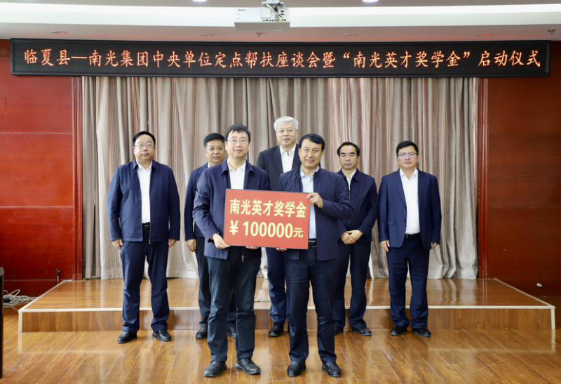 在听取了临夏县县长马俊平汇报临夏县巩固拓展脱贫攻坚成果与乡村振兴工作开展情况、南光集团派驻当地副县长苏庆辉汇报南光集团帮扶工作开展情况及成效之后,南光集团副总经理陈伟军代表集团向临夏县捐赠了“南光英才奖学金”。何存鹏书记表示对南光集团的倾力帮扶感谢,南光集团深入贯彻习近平总书记对定点帮扶工作的重要指示精神,充分发挥自身优势,在产业培育、人才协作、消费帮扶、劳动技能培训等多个领域给予倾力帮扶,助力临夏县巩固拓展脱贫攻坚成果同乡村振兴有效衔接工作取得显著成效。创新开展的甘肃省赴澳就业现场招录会(临夏县分会场)和“南光英才奖学金”活动,必将进一步推动定点帮扶工作走深走实,为乡村振兴注入新的活力动力。