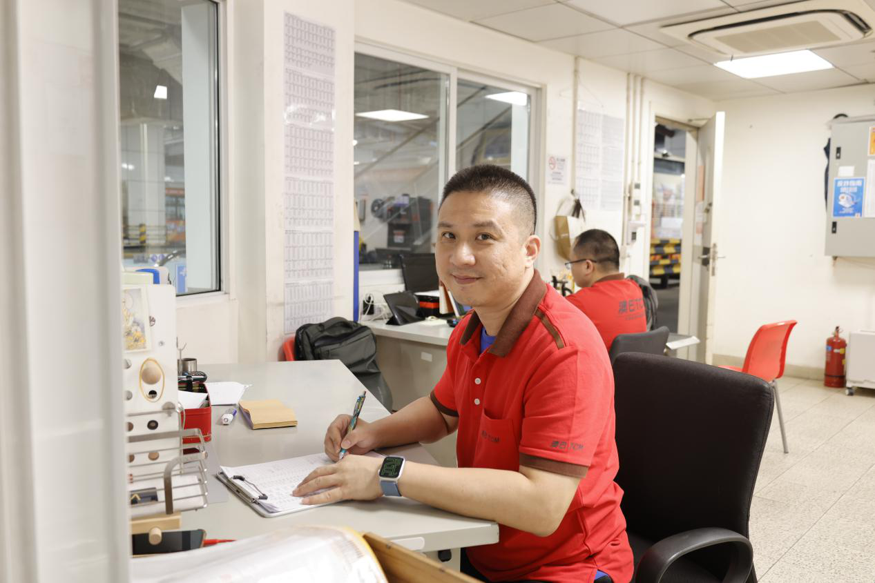 南光石油机场油库工程部维修员检查维护加油主泵电机,确保节日期间澳门航煤保障安全、准时、高效。