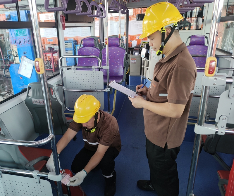 南光澳巴维修工用心检查每一部运营车辆,全力保障节日期间乘客安全出行。