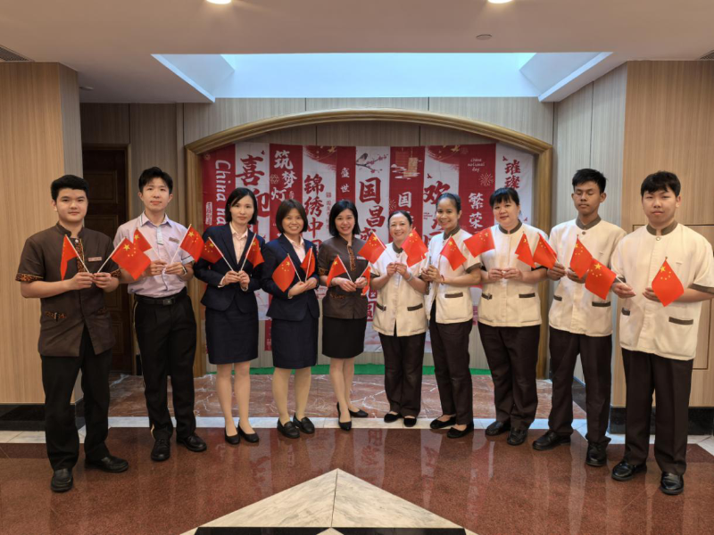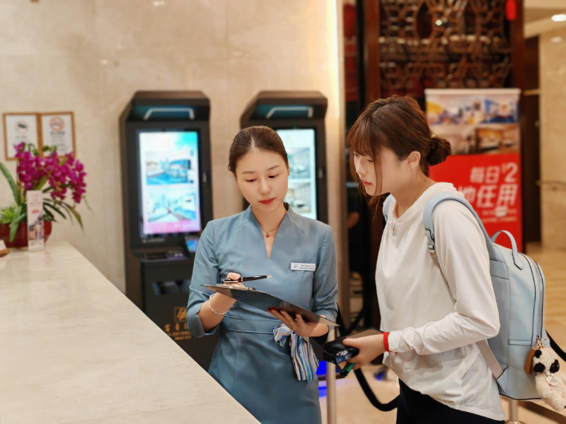 南光澳中旅下属富豪酒店客务部员工用专业、热情、细致的服务迎接每位国庆期间到店的顾客。