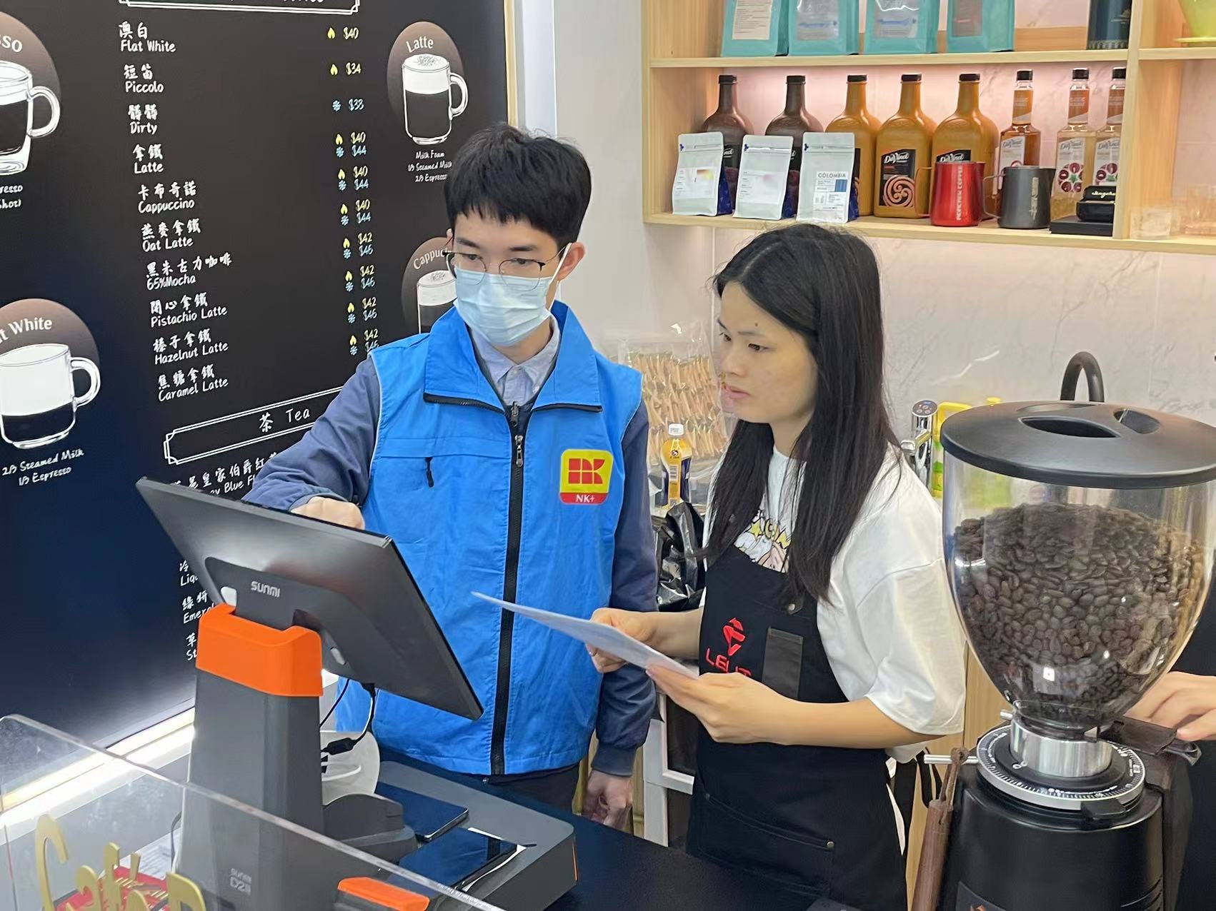 南光通平台为澳门中小企业餐饮商户免费提供自助点餐和自助结账等解决方案,工作人员向餐饮商户详细介绍系统功能和应用方法