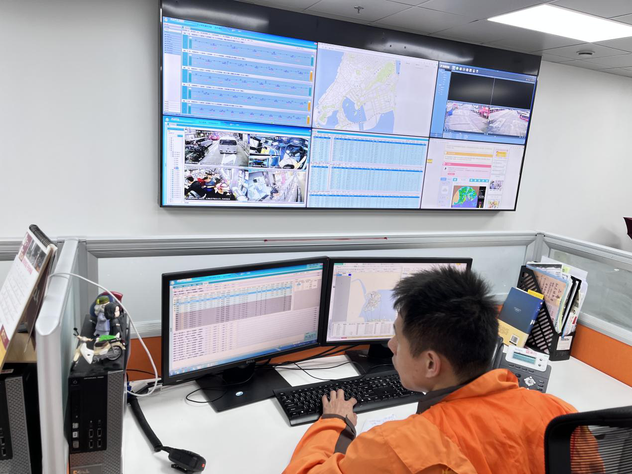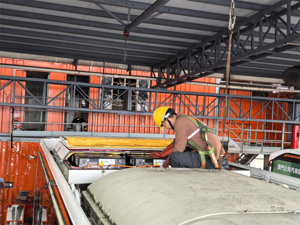 南光澳巴积极做好各项应急准备工作,保障恶劣天气下市民及访澳旅客巴士出行安全。加强落实车辆准备、营运调度、人员安排、场站管理、车辆检查等工作,周密安排。密切关注客量及内港码头一带等路面水浸情况,根据实际情况及时调整营运方案。控制中心实时关注天气资讯,做好车辆调度准备;及时发出安全提示信息提醒车长,加强后台安全监管。驻站维修人员对增程式车辆电池、电器部分筛查,严防水浸损坏。与此同时,于各主要站点增派值守人员,全级次管理人员与一线员工共同疏导乘客出行,确保服务到位。