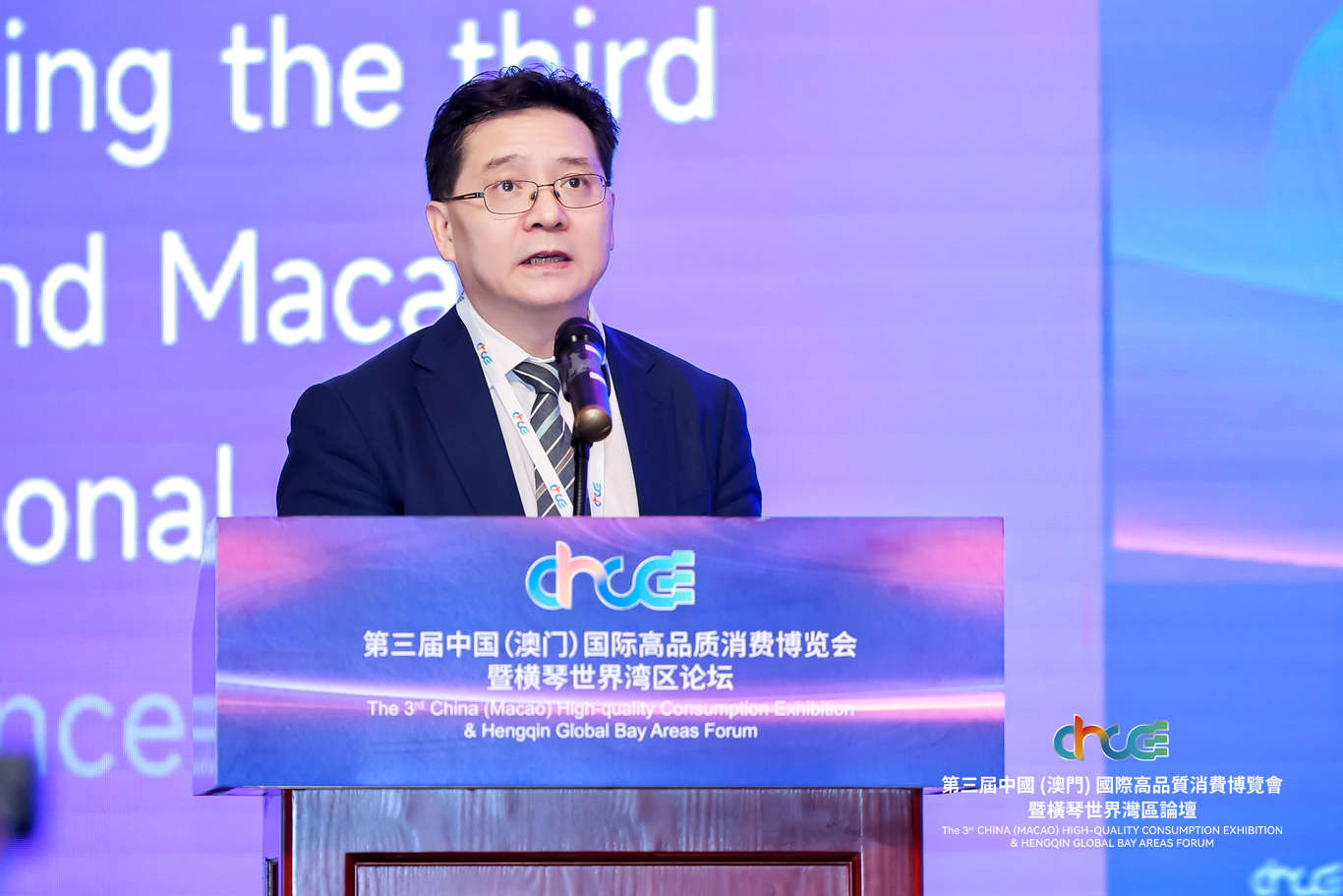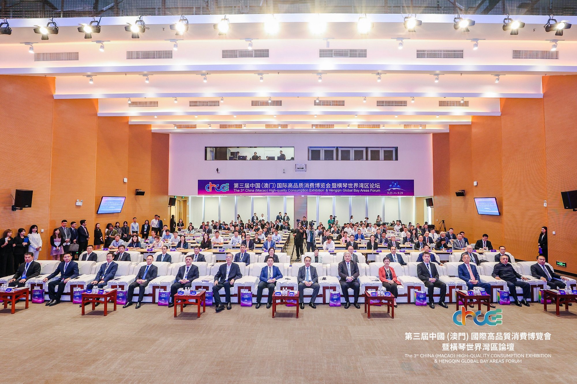 9月26日上午,由南光(集团)有限公司联合商务部外贸发展局、广东省商务厅作为主办单位,澳门特别行政区招商投资促进局、横琴粤澳深度合作区经济发展局、澳门特别行政区政府旅游局、澳门特别行政区政府经济及科技发展局作为支持单位,南方财经全媒体集团作为特邀联合主办单位的第三届中国(澳门)国际高质量消费博览会暨横琴世界湾区论坛(以下简称高品会)于横琴粤澳中医药产业园科研总部大楼盛大开幕。