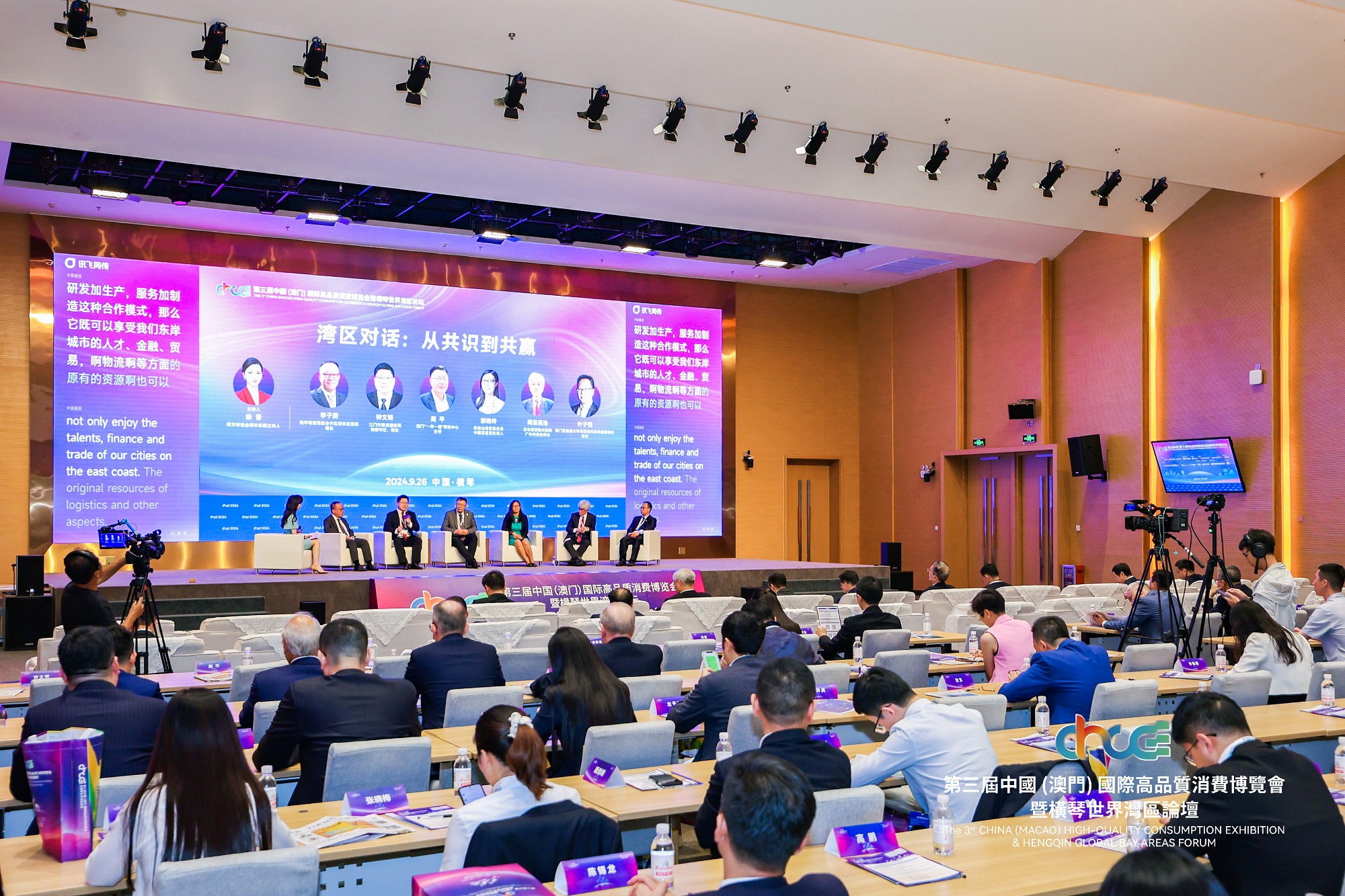 本届高品会继续以“一会展两地”的方式在琴澳两地共同举办。其中9月25-26日在横琴举办的第三届横琴世界湾区论坛以“湾区向新:共谱改革新篇,共筑开放新局”为主题,生动展示粤港澳大湾区发展成效与机遇、深刻阐释中国经济政策与改革思路、积极促进全球湾区深化交流与合作、大力推动横琴合作区建设和赋能澳门经济适度多元发展。9月27-29日在澳门威尼斯人金光会展中心举办的第三届中国(澳门)国际高质量消费博览会,将利用澳门及横琴的特殊区位优势,搭建高质量产品与服务的品牌展示、发布、体验和商贸对接平台。