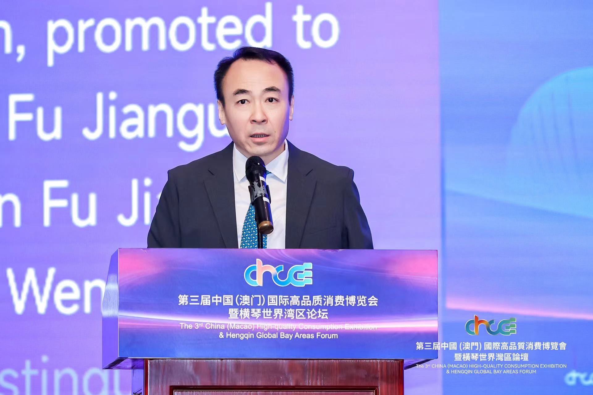 傅建国代表主办单位向到场嘉宾致以热烈的欢迎和衷心的感谢。他表示,办好这次展会和论坛,既是深入贯彻中央决策部署的重要举措,也是深化粤澳高水平合作、推进大湾区高质量发展的实际行动。本届高品会得到了国务院国资委、广东省人民政府、澳门特区政府的指导支持和众多参展商、合作伙伴的积极参与。多家国资央企纷纷携旗下精品参展亮相,充分展示了国有企业在创新发展、品牌引领和文化输出方面的卓越表现,并通过智能服务和先进技术集中展示了在数字化转型和高质量管理方面的领先优势。众多国内外知名企业踊跃参展,积极搭建高效对接平台,务实促进贸易合作交流。同时,众多国内外专家学者、行业领军人物齐聚澳门和横琴,聚焦金融、消费、文旅、跨境电商和新质生产力等主题进行思想碰撞、建言献策。相信在各方的共同努力下,本届高品会必将取得圆满成功。南光集团期待与各界同仁一道,共同把握“一带一路”倡议下的粤港澳大湾区发展机遇,共同开创湾区美好未来。