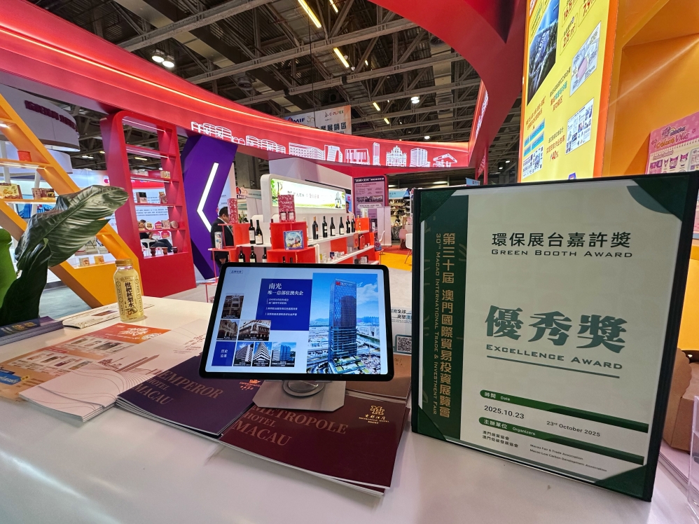 本次集团展台搭建均采用可回收环保物料,荣获本届澳门国际贸易投资展览会环保展台嘉许奖。