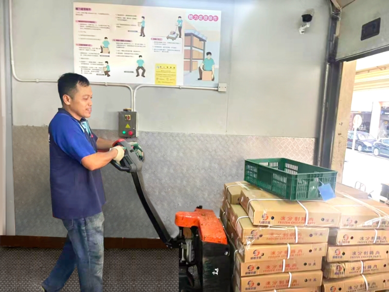 南光谷丰针对节日消费特点,积极组织货源,增加生鲜鸡、牛小排等热门商品供应量。员工高效完成卸货、装车等工作,确保各品类冻品及时配送,满足澳门居民和旅客节日多样化食材需求。
