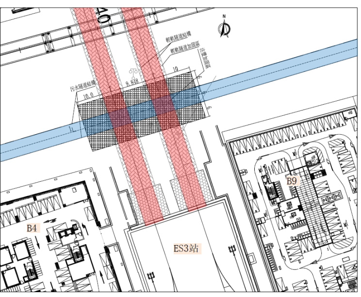 “澳门人工岛污水处理设施建造工程-东线隧道段地质加固项目”毗邻轻轨东线ES3站,处于轻轨东线北端盾构隧道与污水盾构隧道交叉区域。因轻轨隧道施工先于污水项目施工,为最大限度减小后续施工对已建轻轨隧道的影响,保障污水盾构顺利推进及轻轨隧道安全稳定,需提前对交叉区段的土体进行加固。