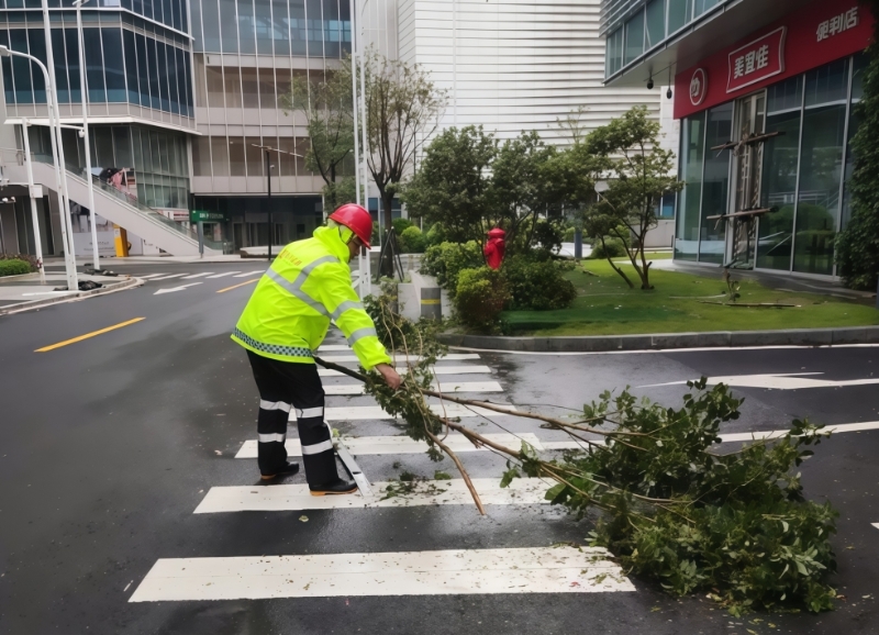 南光置业服务人员清理塌树及断枝,保障道路通行