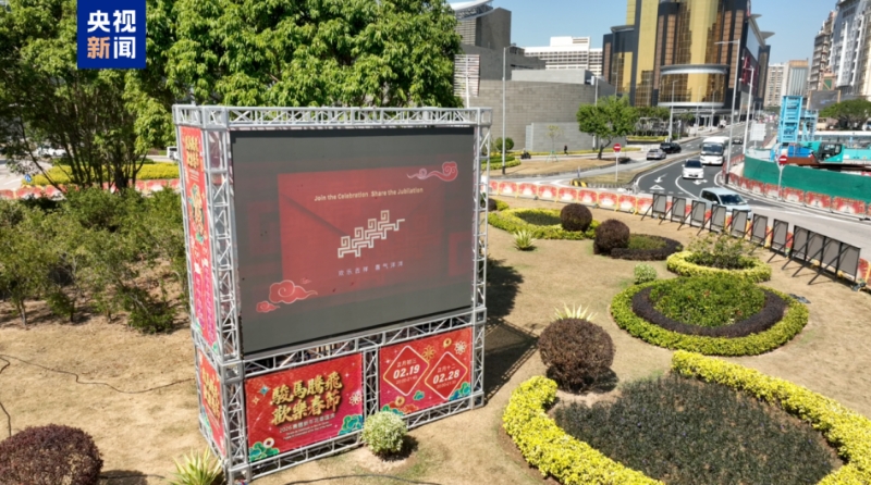 在澳门官也街、渔人码头、南湾湖水上活动中心、澳门科学馆、塔石广场等热门景点和商圈,总台春晚宣传片与装饰一新的喜庆街景融为一体,将澳门新春的氛围瞬间拉满,吸引了不少市民和中外游客纷纷驻足欣赏。