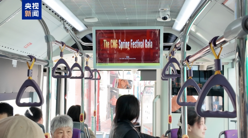 春节假期,公共巴士是澳门市民和游客出行的重要交通工具,覆盖社区、景区和商圈等场景。今年,总台春晚宣传片登上澳门150辆巴士的车载屏幕,在穿梭大街小巷间,将新春祝福送到乘客身边。