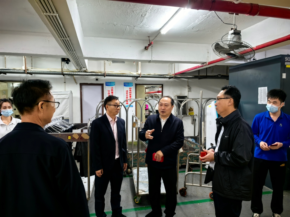 在高洁洗衣公司,姜维亮实地察看各工序作业情况,重点检查锅炉房、油渣开关总闸等关键设备的运行与维保状况,详细询问一线员工节假日物资储备情况,强调要从严从实从细落实安全生产各项举措,以高水平安全护航高质量发展。