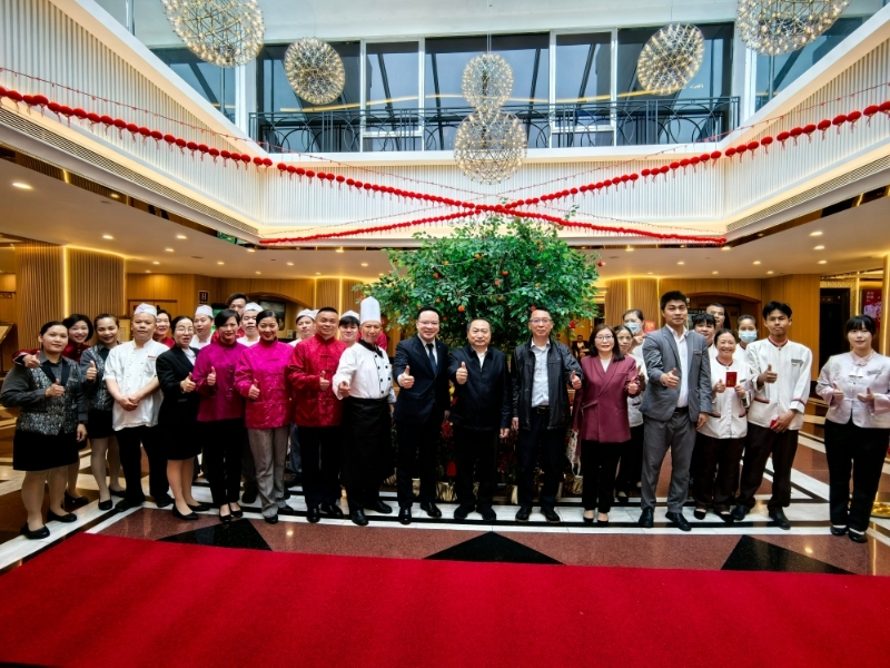 在万豪轩、濠璟酒店,姜维亮与酒店前台、餐厅后厨等在岗员工亲切交流、送上新春问候,详细了解节日期间酒店顾客接待、餐饮运营及安全生产工作情况,鼓励大家新的一年坚定信心、开拓进取,持续提升服务品质,擦亮南光良好品牌形象。